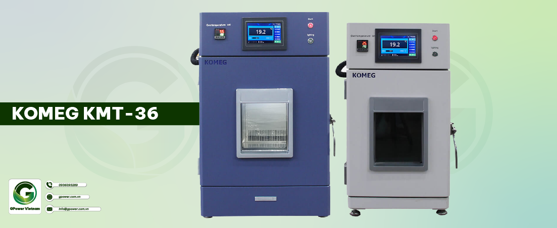 Buồng thử nghiệm nhiệt độ để bàn là buồng thử nghiệm nhiệt độ tiêu chuẩn nhỏ nhất của KOMEG với dải nhiệt độ từ -60°C đến +150°C. Có ba lựa chọn: KMT-36R, KMT-36L và KMT-36S.