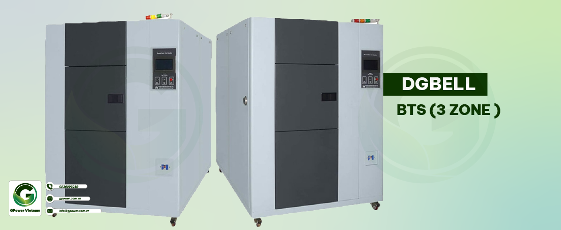Buồng thử nghiệm sốc nhiệt của DGBELL (3 Zone) bao gồm ngăn thử nghiệm, ngăn gia nhiệt và ngăn làm lạnh. Mẫu thử nằm trong vùng thử nghiệm, không khí nóng và lạnh sẽ thổi từ các khu vực lưu trữ để đạt được sự thay đổi nhiệt độ nhanh chóng cho sốc nhiệt.