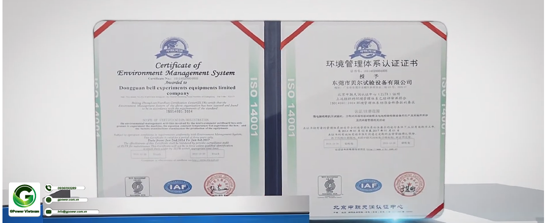 Một số sản phẩm đạt chứng chỉ ISO 14001 của DGBell - một nhà cung cấp uy tín trong lĩnh vực thiết bị thử nghiệm và máy móc công nghiệp và đối tác thân thiết của công ty GPower Việt Nam.