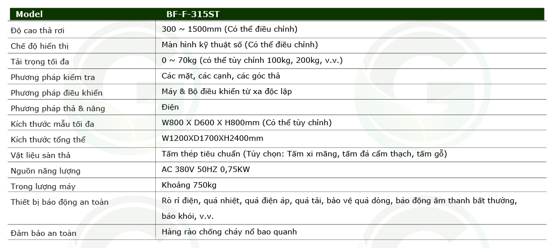 BF-F-315ST có khả năng kiểm soát chính xác độ cao thả rơi trong buồng thử nghiệm, giúp dữ liệu thử nghiệm chính xác hơn.