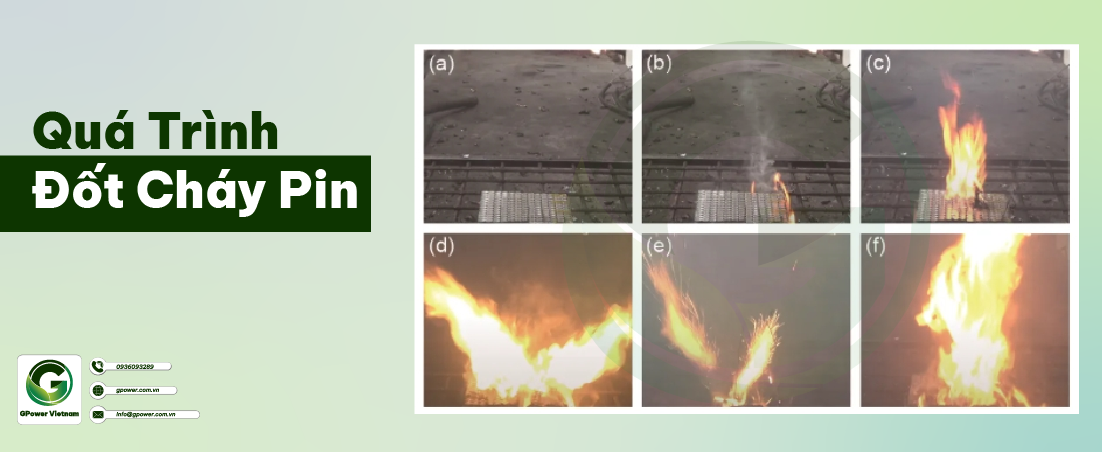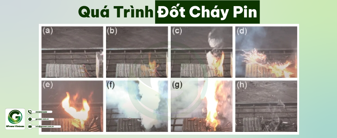 - (6) Giai đoạn suy giảm. Sau khi các vật liệu dễ cháy bên trong pin được tiêu thụ dần, lửa sẽ tắt.